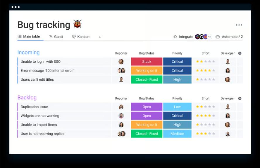 - Фильтрация и назначение приоритетов. Ошибки можно отслеживать с помощью тегов, фильтров и приоритетов. Вы можете проверить статус ошибки и время, которое дается на ее устранение.