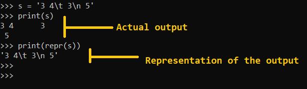 Согласно документации Python, метод repr() возвращает строку, содержащую печатное представление объекта. Это означает, что мы можем увидеть любые специальные символы, такие как \t или \n, которые появляются в строке.