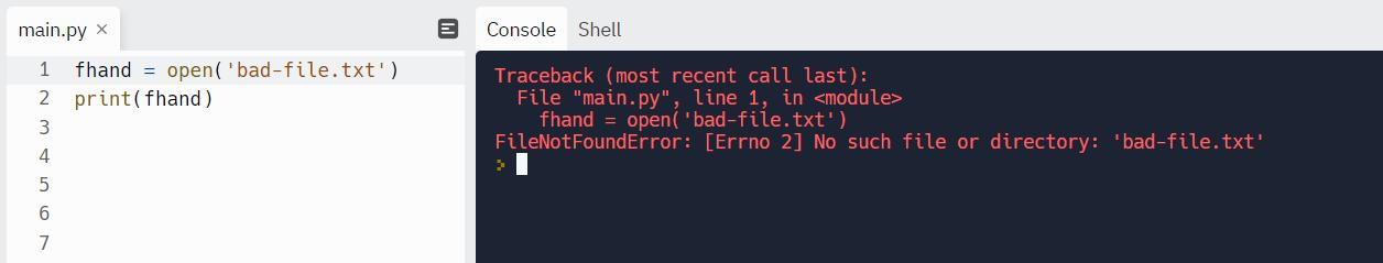 Возможно, файл, который мы запрашиваем, не существует. Это приведет к сбою программы из-за исключения: