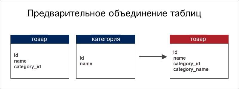 Предварительно объединенные таблицы хранят часто используемую информацию в одной таблице. Этот метод полезен, когда: