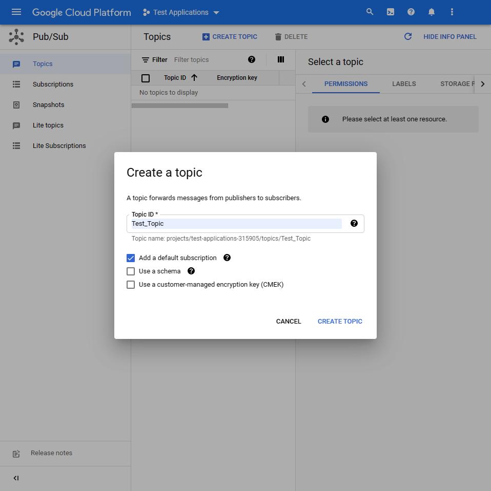 Первый шаг – создать тему в Google Pub/Sub для того, чтобы у нас была возможность публиковать сообщения в этой теме.