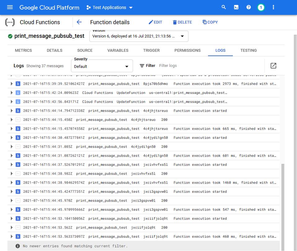Ну вот и все! Мы успешно настроили конвейер обмена сообщениями. Когда вы запустите скрипт «message_publish», данные опубликуются в Test_Topic, запустится облачная функция Google (print_message_pubsub_test), которая отправит данные на сайт Webhook.