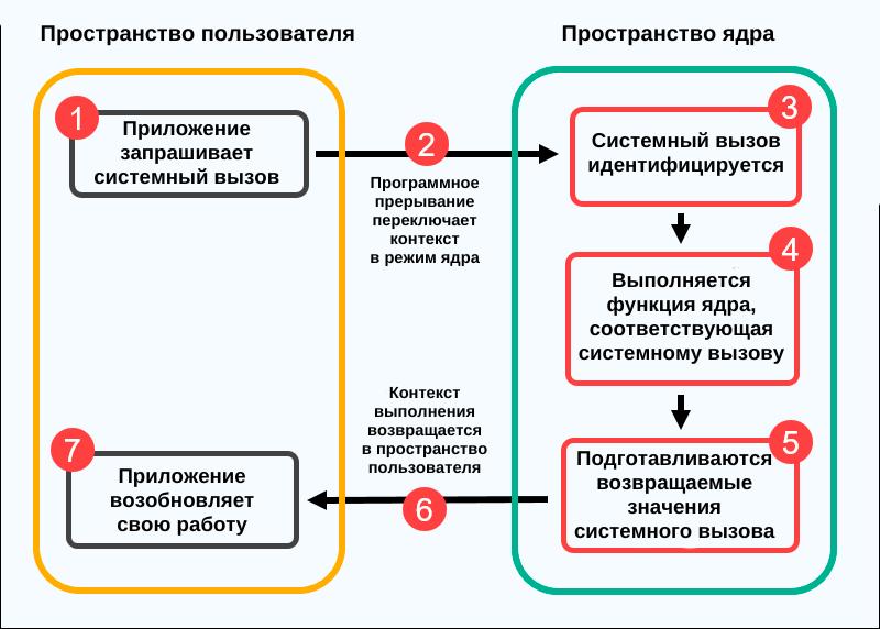Примечание: точное количество шагов и принцип работы системных вызовов могут различаться в зависимости от операционной системы.