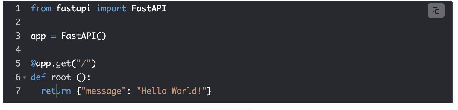 Строка 1: мы импортируем FastAPI, который является классом Python, предоставляющим всю функциональность API.