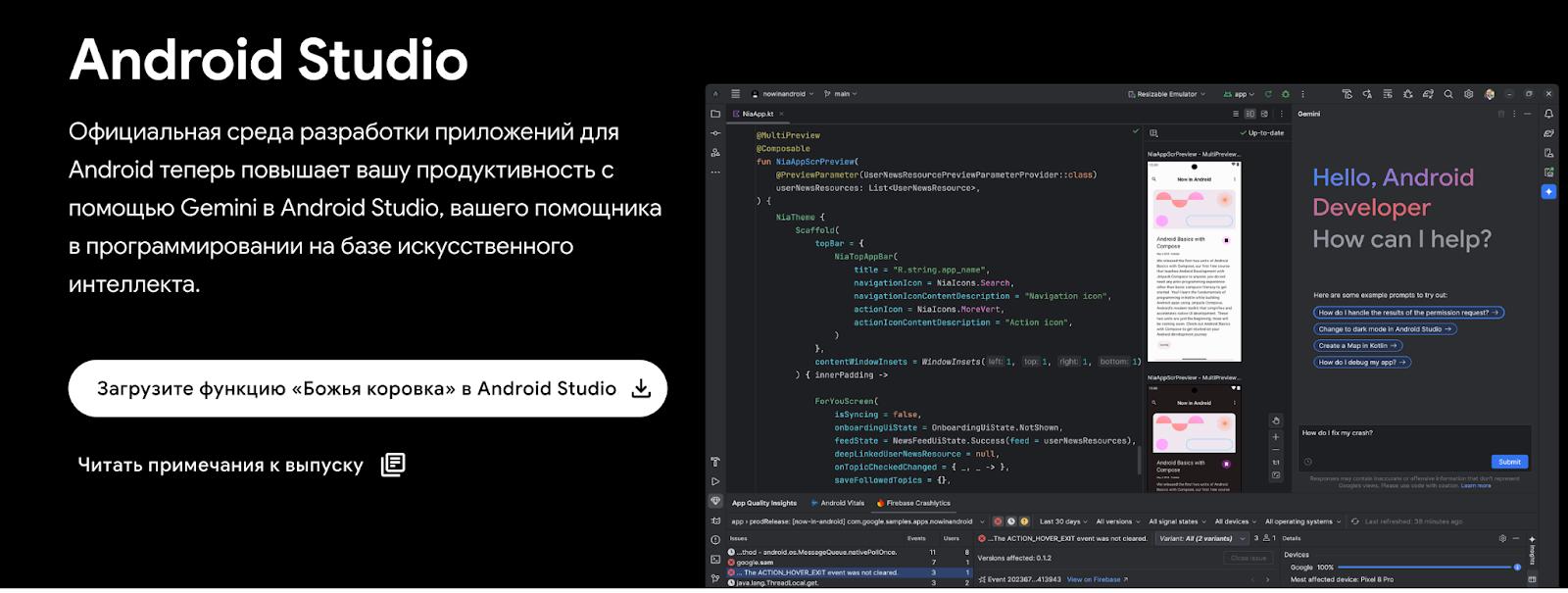 - Android Studio — обязательная IDE для Android-программирования на Kotlin и Java.