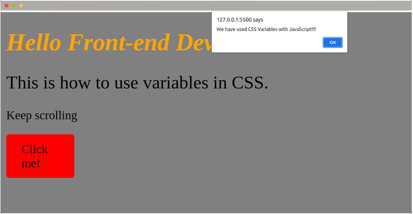 window.alert("We have used CSS Variables with JavaScript!!!!");