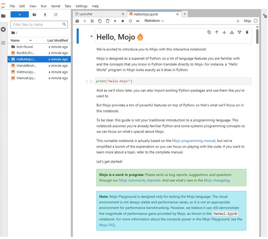 Испробовать Mojo можно через облачную среду Mojo Playground. Вас попросят войти в систему, после чего вы сможете начать работу!