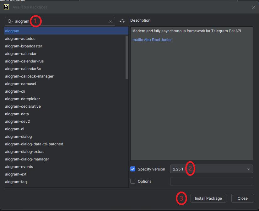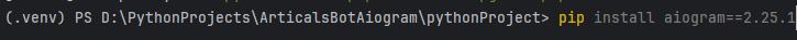 Профессионалы могут в своей любимой IDE в терминале ввести команду pip install aiogram==2.25.1
