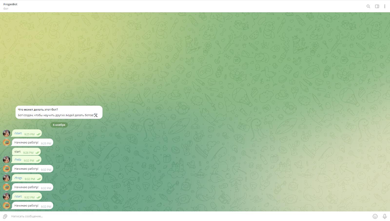 Запускаем в работу скрипт, заходим в бота и пишем команду start.