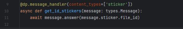 У каждого стикера эта последовательность индивидуальна, и как раз-таки она нам нужна для отправки их пользователю с помощью бота.