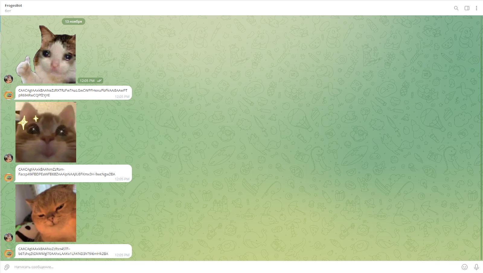 При отправке стикеров мы исправно получаем его код. А сейчас увидим, для чего же он нам так нужен.