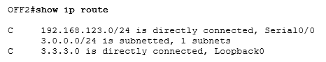 OFF1 отправляет трафик в сеть 3.3.3.0 / 24, используя последовательную связь между OFF1 и OFF3. Было бы лучше, если бы мы использовали канал между OFF1 и OFF2, потому что использование каналов FastEthernet быстрее, чем последовательный канал.