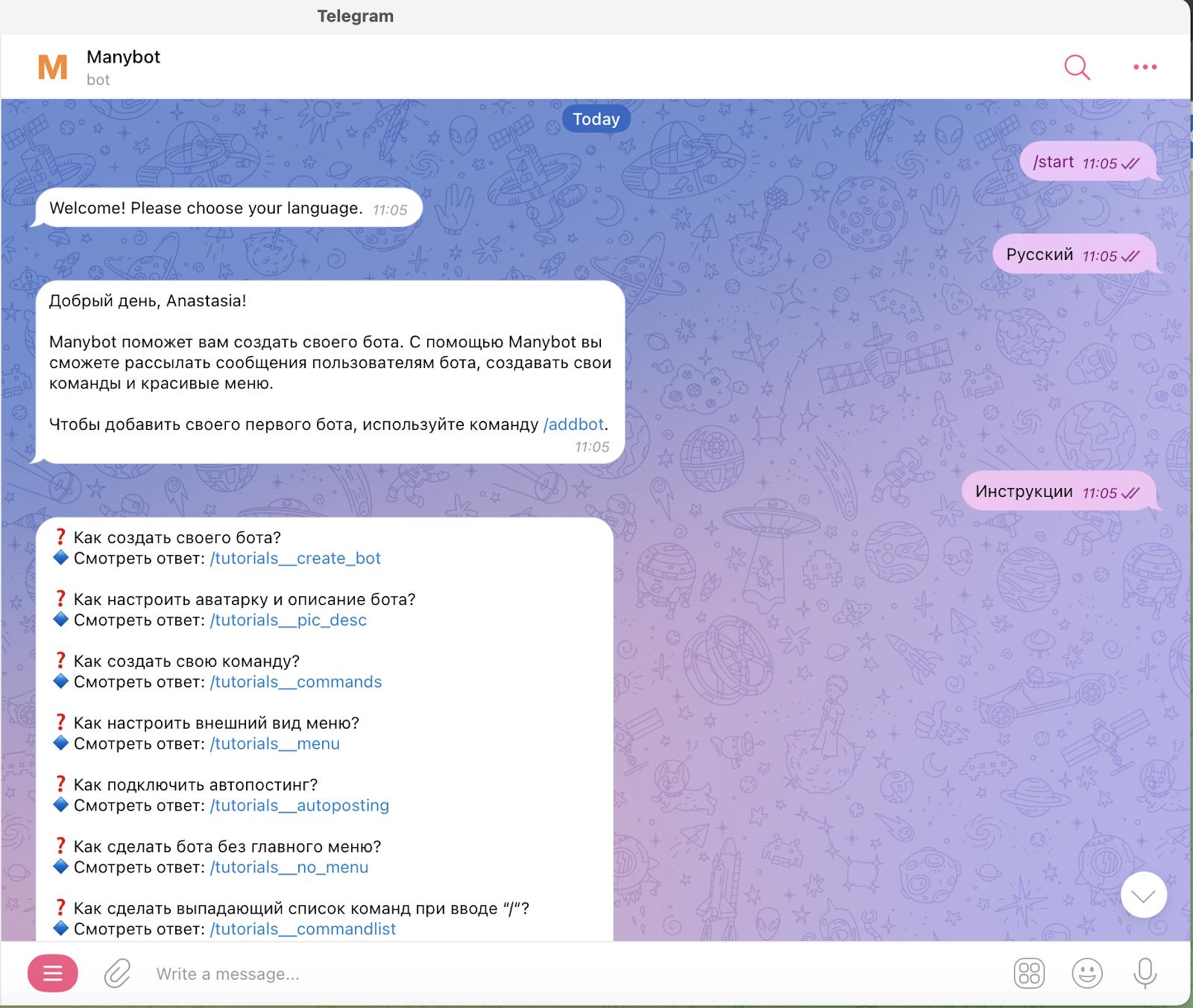 Это тоже бот, заточенный под Telegram. Сервис позволяет пользователям создавать своих собственных ботов без необходимости знаний программирования. Для создания бота достаточно пройти несложный процесс настройки, выбрав нужные опции и функции. Когда бот будет готов к работе, он сможет выполнять простые задачи: отправлять уведомления, отвечать на вопросы пользователей или рассылать информацию.