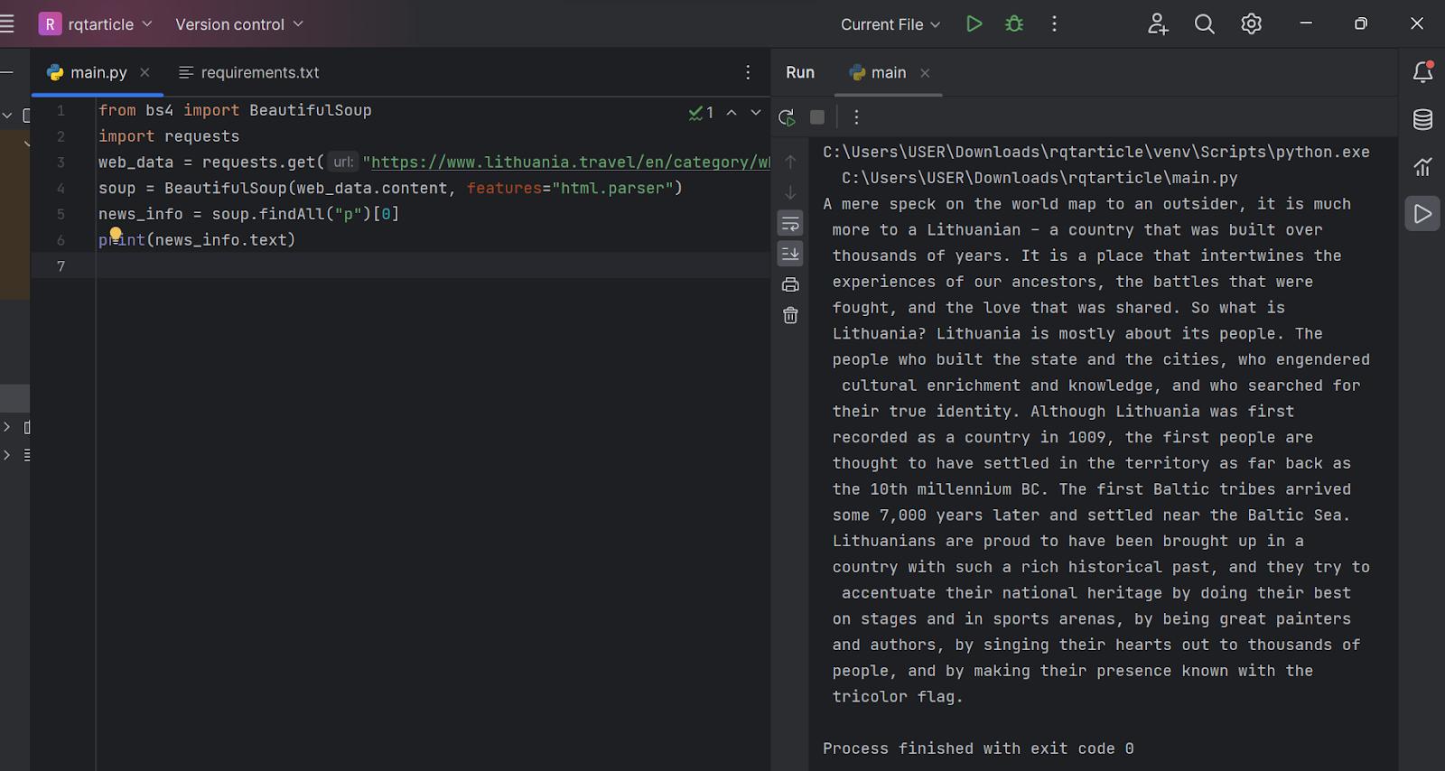 web_data = requests.get("https://www.lithuania.travel/en/category/what-is-lithuania", headers={"User-Agent": "Mozilla/5.0 (Windows NT 10.0; Win64; x64) AppleWebKit/537.36 (KHTML, like Gecko) Chrome/112.0.0.0 Safari/537.36"})