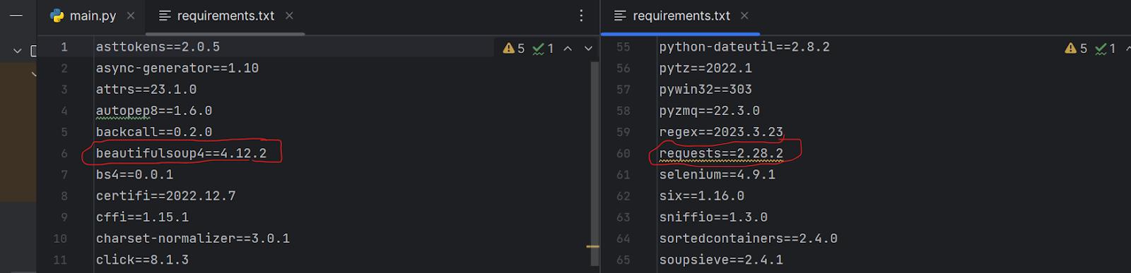 На изображении, представленном выше, вы видим, что в файле requirements.txt есть обе эти библиотеки, и, кроме того, указаны их версии. Так вот, раз мы установили их ранее, мы можем с ними работать.