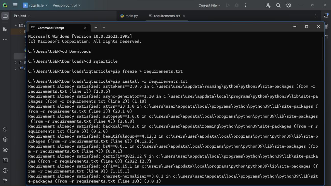 Итак, все зависимости установлены, и теперь вы можете работать с файлом requirements.txt.