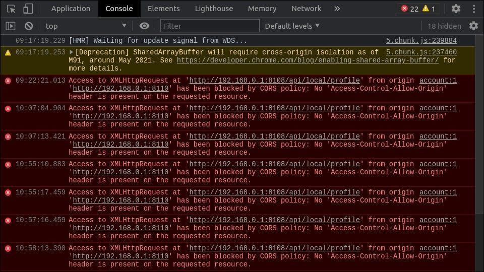 CORS, как правило, незаметен, поэтому вы даже не будете знать о том, что он работает. Если в процессе CORS произойдет сбой, то ваш код JavaScript увидит обычную сетевую ошибку. Получить точную информацию о том, что пошло не так, невозможно, поскольку это может представлять риск нарушения безопасности. Все подробности записываются в консоль.