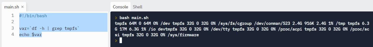 Пример: предположим, что мы хотим вывести список точек подключения так, чтобы в их названии присутствовало tmpfs. Мы можем выполнить вот такой оператор: df -h | grep tmpfs.