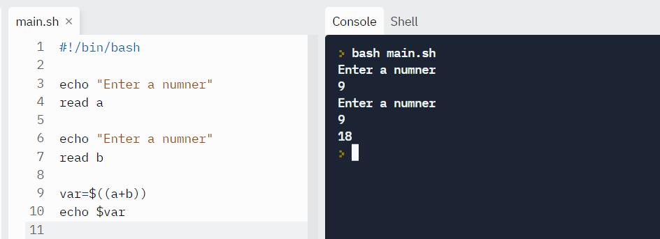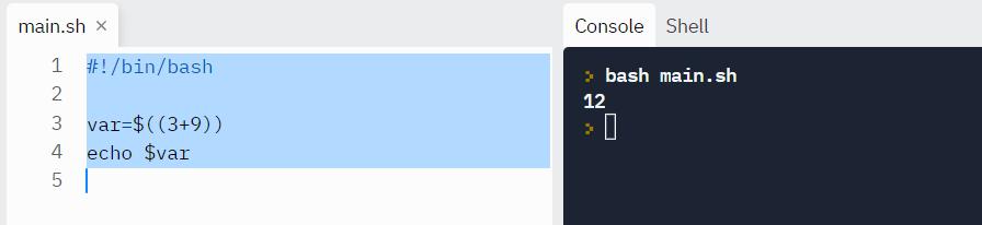 Кроме того, вы можете вычислить какое-то числовое выражение и сохранить его значение в переменной с помощью следующего синтаксиса: