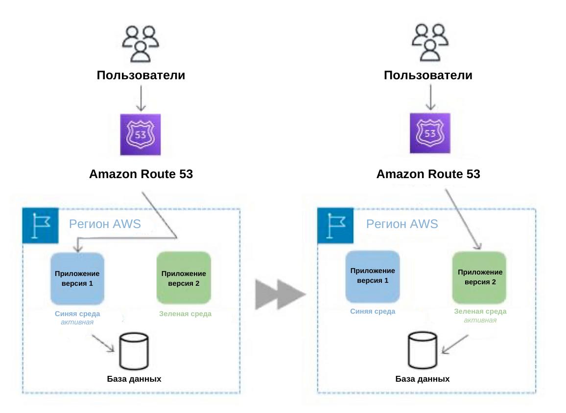 В активной среде запускается текущая версия программного обеспечения, и пользовали генерируют в ней рабочий трафик. В неактивной среде развертывается и тестируется новая версия программного обеспечения.