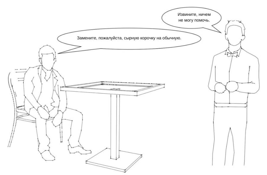 Иллюстрация: другой официант не может изменить заказ клиента