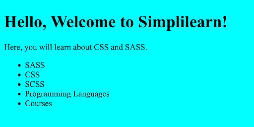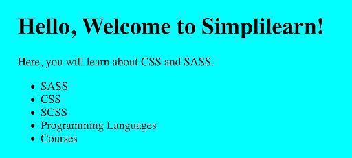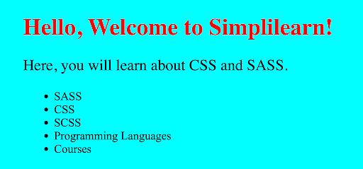 <h1>Hello, Welcome to Simplilearn!</h1>